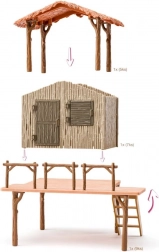 - Complete safaripost – hut op palen, balustrade, ladder, verblijven, karretje en praktische gereedschappen.