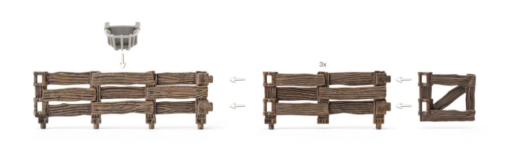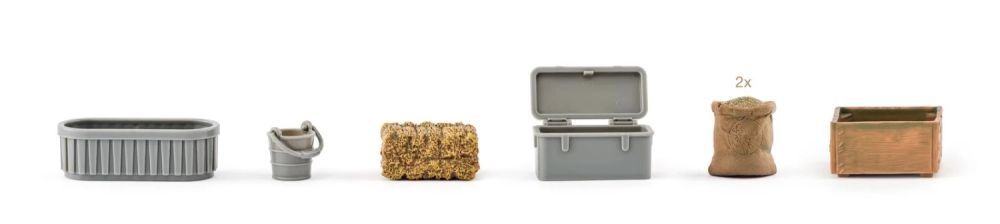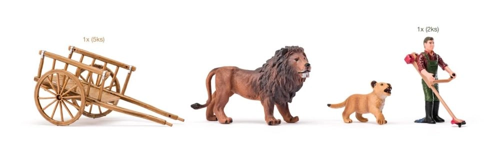 - Verhoogde hut met balustrade en ladder, verblijven, karretje, mini-gereedschap, mensenfiguur, dierenfiguren (bijv. olifant, olifantenjong, giraffe, zebra, zebrajong, leeuw, krokodil, nijlpaard, antilope, wrattenzwijn, stokstaartje, vogels e.a.)