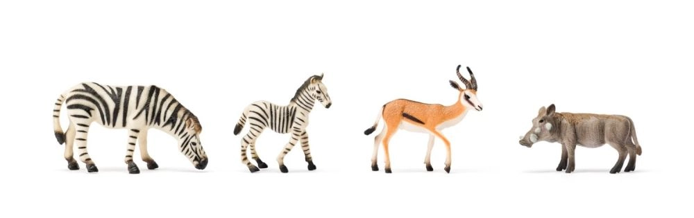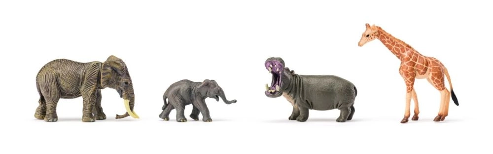 Van jongen tot volwassen dieren – de mix van olifanten, giraffen, zebra’s, antilopen en een nijlpaard stimuleert creatieve scenario’s en urenlang speelplezier.