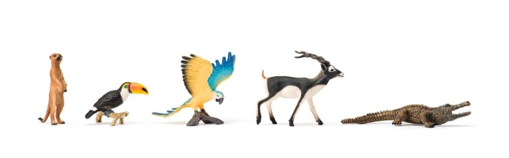 De set bevat zorgvuldig gemodelleerde en beschilderde figuren – van de majestueuze olifant en giraffe tot de leeuw, zebra en krokodil. Ideaal om mee te spelen en dierennamen te leren.