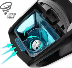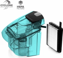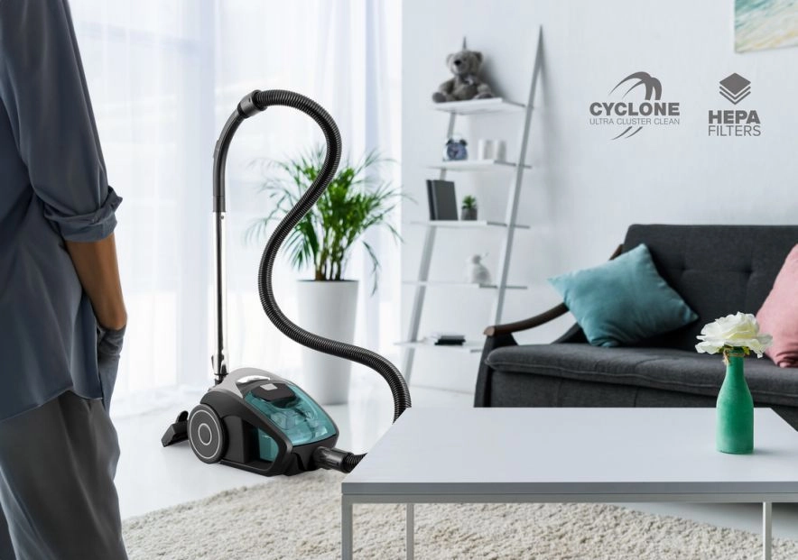 Cycloontechnologie zorgt voor constante prestaties, ongeacht de vulling van de container. De luchtstroom scheidt effectief stof en vuil, waardoor de stofzuiger een hoge zuigkracht behoudt en de terugkeer van fijne deeltjes in de lucht minimaliseert. Zo wordt schoonmaken sneller, efficiënter en hygiënischer.