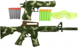 Deze set voor kleine schutters biedt alles wat nodig is voor een actievol maar veilig spel. Het geweer is uitgerust met een afneembaar vizier voor nauwkeuriger richten, het pistool is perfect voor snelle actie en de schuimkogels zorgen voor veilig gebruik. De veiligheidsbril is inbegrepen voor nog meer veiligheid tijdens het spelen.