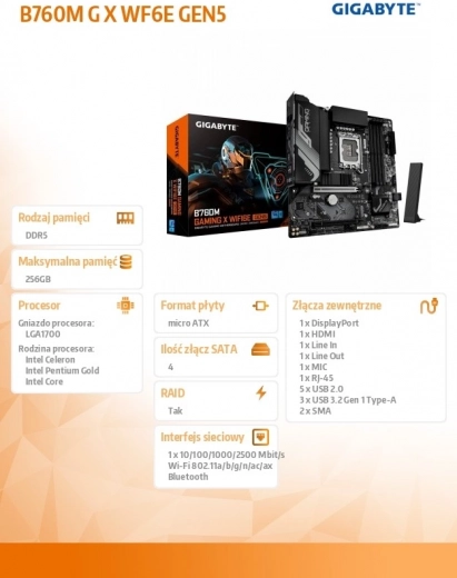 Het compacte B760M GAMING X‑moederbord biedt een modern platform voor Intel Core processoren van de 12e/13e/14e generatie met ondersteuning voor PCIe 5.0, snelle DDR5-geheugenmodules en draadloze connectiviteit Wi‑Fi 6E. Dankzij doordachte VRM- en M.2‑koeling, 2,5 GbE-netwerk en eenvoudige montagetools levert het stabiele prestaties en een gemakkelijke bouw van zowel een gaming- als werk-pc.