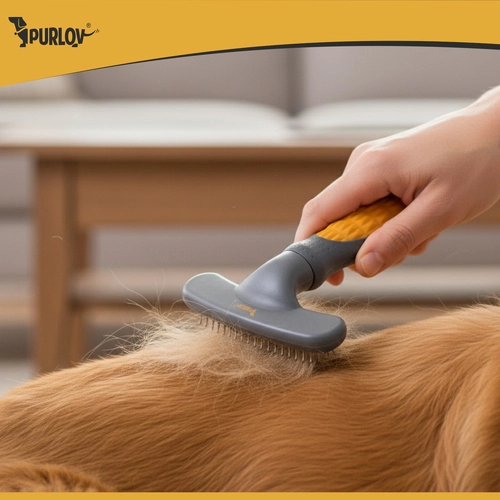 De Purlov-kam met roterende en beweeglijke tanden pakt knopen en klitten moeiteloos aan zonder gezonde haren uit te trekken. De dubbele rij roestvrijstalen tanden verzamelt doeltreffend ondervacht en losse haren tot op de huid, waardoor hij perfect is voor zowel dagelijkse als grondige verzorging.