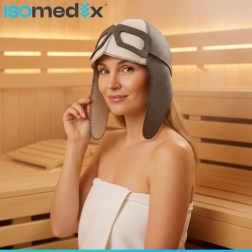 Ontdek comfort en bescherming in één. De ISOMEDIX saunamuts in “piloten”-snit isoleert de hoofdhuid effectief tegen hitte, behoudt de warmtebalans en helpt oververhitting en het uitdrogen van het haar te voorkomen. Natuurlijk vilt is ademend en absorbeert overtollig vocht, zodat u zich ook tijdens langere sessies prettig voelt.