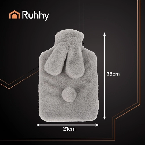 De RUHHY kruik met een inhoud van 1,8 l zorgt voor snel opwarmen na het vullen met heet water en houdt de warmte aanzienlijk langer vast dan kleinere flessen. De zachte pluchen hoes voelt prettig op de huid en verkleint het risico op verbranding. Je kunt hem gebruiken om op te warmen, maar ook als verkoelend kompres wanneer je hem met koud water vult.