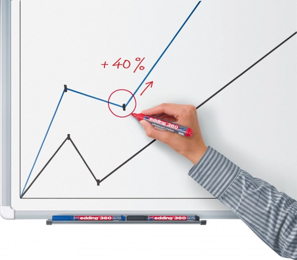 De speciale cap‑off-inkt voorkomt snel uitdrogen, zelfs wanneer de dop eraf blijft. De zwak ruikende pigmentinkt bevat geen butylacetaat en is daardoor prettig voor gebruik binnenshuis. De schrijfbreedte van 1,5–3 mm zorgt voor duidelijke, maar nauwkeurige notities.