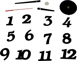 De set bevat cijfers, wijzers en uurwerk – alles wat je nodig hebt voor een snelle montage op een glad oppervlak.