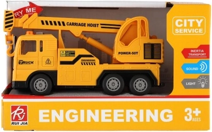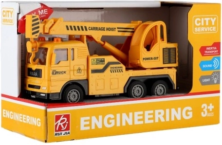 Het voertuig is verlicht door de bijgeleverde batterijen en de kraan met vliegwielaandrijving zorgt voor gemakkelijk manoeuvreren. Dit model is ideaal voor kleine fans van bouwmachines die zich als echte ingenieurs willen voelen.