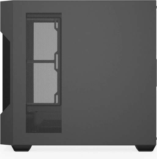 Het praktische zijpaneel van gehard glas op scharnieren met snelsluitmechanisme biedt directe toegang tot het interieur zonder schroeven. Het interieur is voorbereid voor ATX/M-ATX/ITX moederborden, grafische kaarten tot 425 mm en CPU-koelers tot 170 mm. Kabeldoorvoeren met rubberen afdekkappen helpen een perfecte cable management en een strak uiterlijk te behouden.