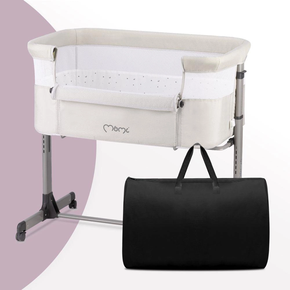 De universele zwarte MoMi-tas is ontworpen voor het eenvoudig opbergen en vervoeren van de MoMi REVO en MoMi SMART BED ledikanten. Dankzij het stevige materiaal en de praktische afmetingen draag je de tas comfortabel en beschermt hij het ledikant tegen stof en beschadigingen.