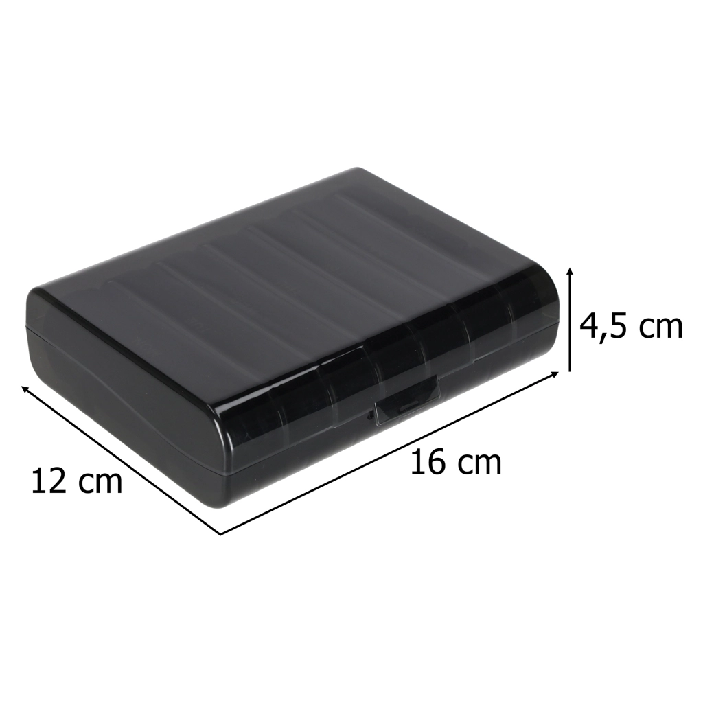 De slanke houder past in een handtas of rugzak. Neem alleen het dagdoosje mee en heb je doses de hele dag bij de hand.