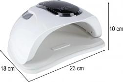 Het praktische bedieningspaneel biedt voorinstelde tijden van 10 s, 30 s, 60 s en 99 s (low heat), die de thermische schok bij gevoelige nagels verminderen. De geïntegreerde bewegingssensor start de lamp automatisch zodra hand of voet wordt ingebracht, wat het werk in de salon én thuis versnelt.