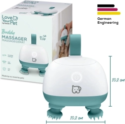 Het Buddy massageapparaat voor honden en katten biedt je huisdier elke dag rustgevende verzorging. De delicate kneedmassage helpt stress te verminderen, bevordert ontspanning en versterkt de band tussen mens en dier. De zachte siliconen koppen masseren zonder aan de vacht te trekken of te draaien – perfect voor gevoelige huid en fijne vacht.