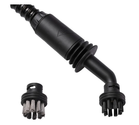In de verpakking vind je een metalen en nylon borstel, een flexibele slang, drie verlengbuizen van 33 cm, een grote nozzle, een platte borstel, een vloermondstuk met adapter en doeken voor diverse oppervlakken.