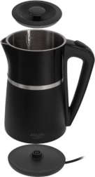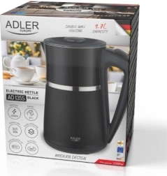 Zoek je een betrouwbare, snelle en veilige waterkoker voor dagelijks gebruik? De ADLER AD 1355 met een inhoud van 1,7 l biedt een hygiënische roestvrijstalen binnenkant en een dubbelwandige behuizing die de thermische isolatie verbetert en het oppervlak koeler houdt bij aanraking. Het elegante zwarte design past perfect in een moderne keuken.