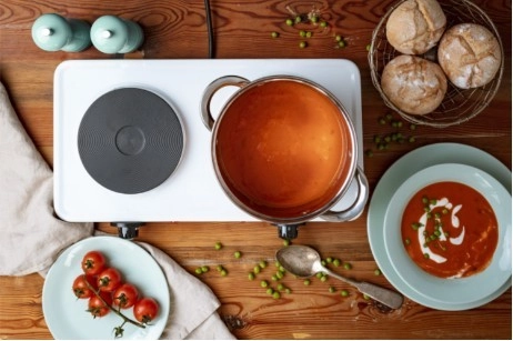 De diameters van 185 mm en 155 mm zijn geschikt voor gangbare potten en pannen, zodat u tegelijk soep kunt koken en een bijgerecht kunt bereiden.