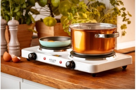 Zoekt u een betrouwbare en ruimtebesparende kookplaat voor dagelijks koken en snel opwarmen? De dubbele elektrische kookplaat ADLER AD 6520 combineert een hoog vermogen van 2500 W met compacte afmetingen, waardoor hij perfect is voor kleine keukens, een vakantiehuis, kantoor of studentenkamer. Dankzij de twee kookplaten met verschillende diameters past u eenvoudig uw kookgerei en bereidingsstijl aan.