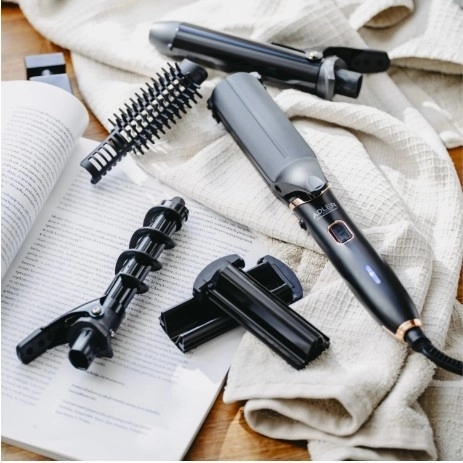 De ADLER 5-in-1 haarset combineert alles wat je nodig hebt voor universele styling: van perfect steile lokken via modieuze golven tot veerkrachtige krullen of uitgesproken textuur met de crêpetang. De keramische afwerking verdeelt de warmte gelijkmatig en helpt het haar te beschermen tegen oververhitting, terwijl koele uiteinden en een handgreep die niet oververhit de veiligheid tijdens het gebruik verhogen.