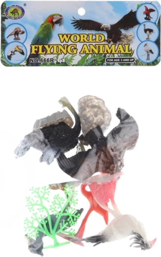 De set bevat vijf vogeltjes van ca. 9 cm, een plastic boom en twee plastic stenen. Alles is opgeborgen in een praktisch zakje dat makkelijk te bewaren en te vervoeren is. Geschikt voor kinderen vanaf 3 jaar.