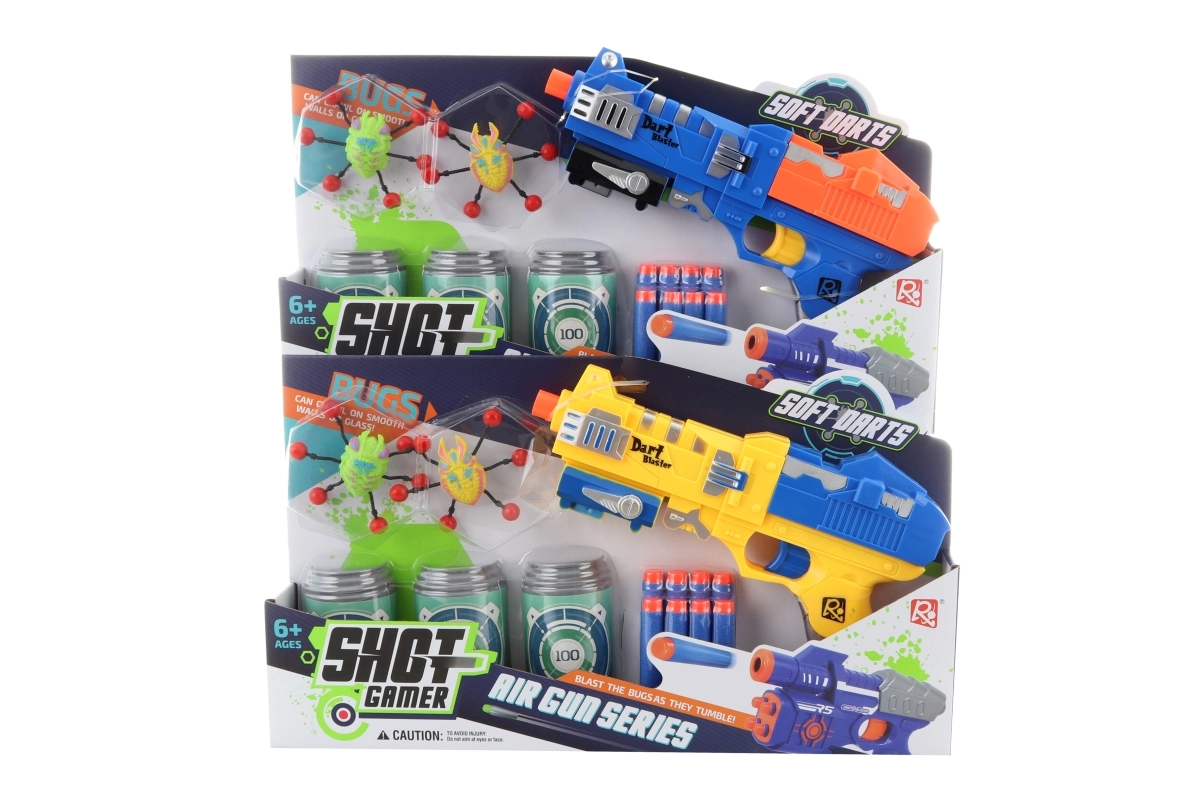 - Complete set – pistool, 8 kogels, 3 doelwitten en 2 kleverige insecten.