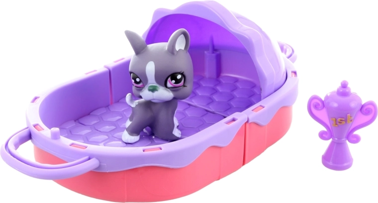 Ontdek de magie van huisdierzorg met deze vrolijke set. Elke verpakking bevat een klein diertje (ca. 6 cm), een praktisch koffertje dat uitklapt tot mandje, en een trofee voor de winnaar. Dankzij het compacte design en het duurzame kunststof is het speelgoed ideaal voor thuis en onderweg.