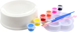 - Complete set – kom, 6 verfjes, 2 penselen en een palet.