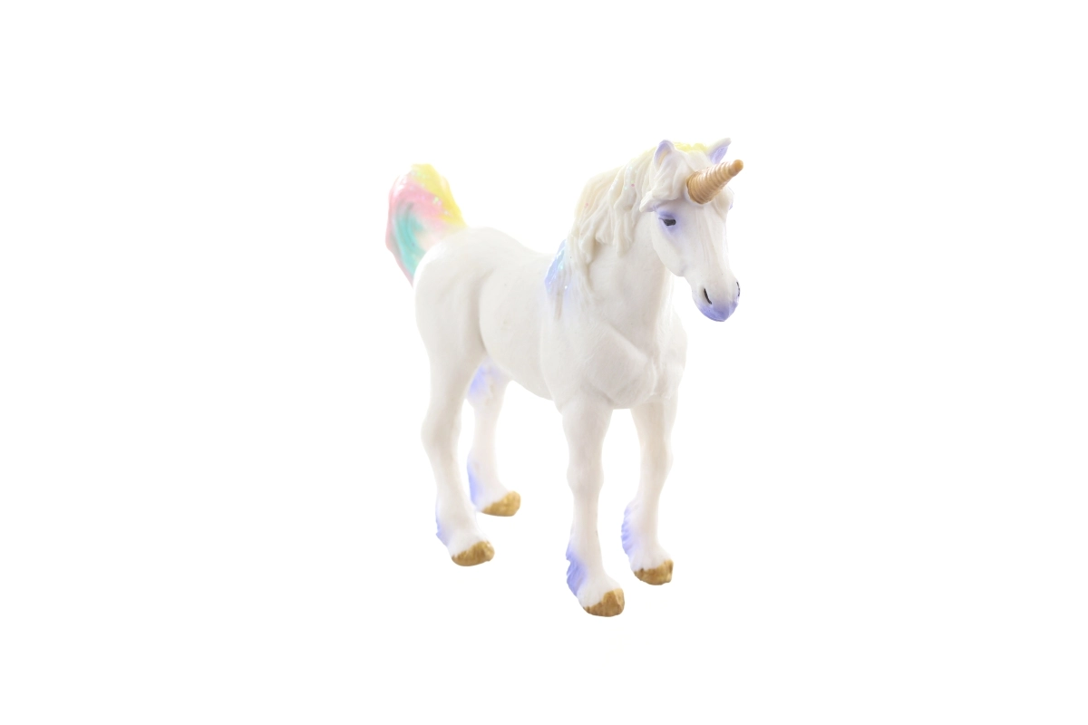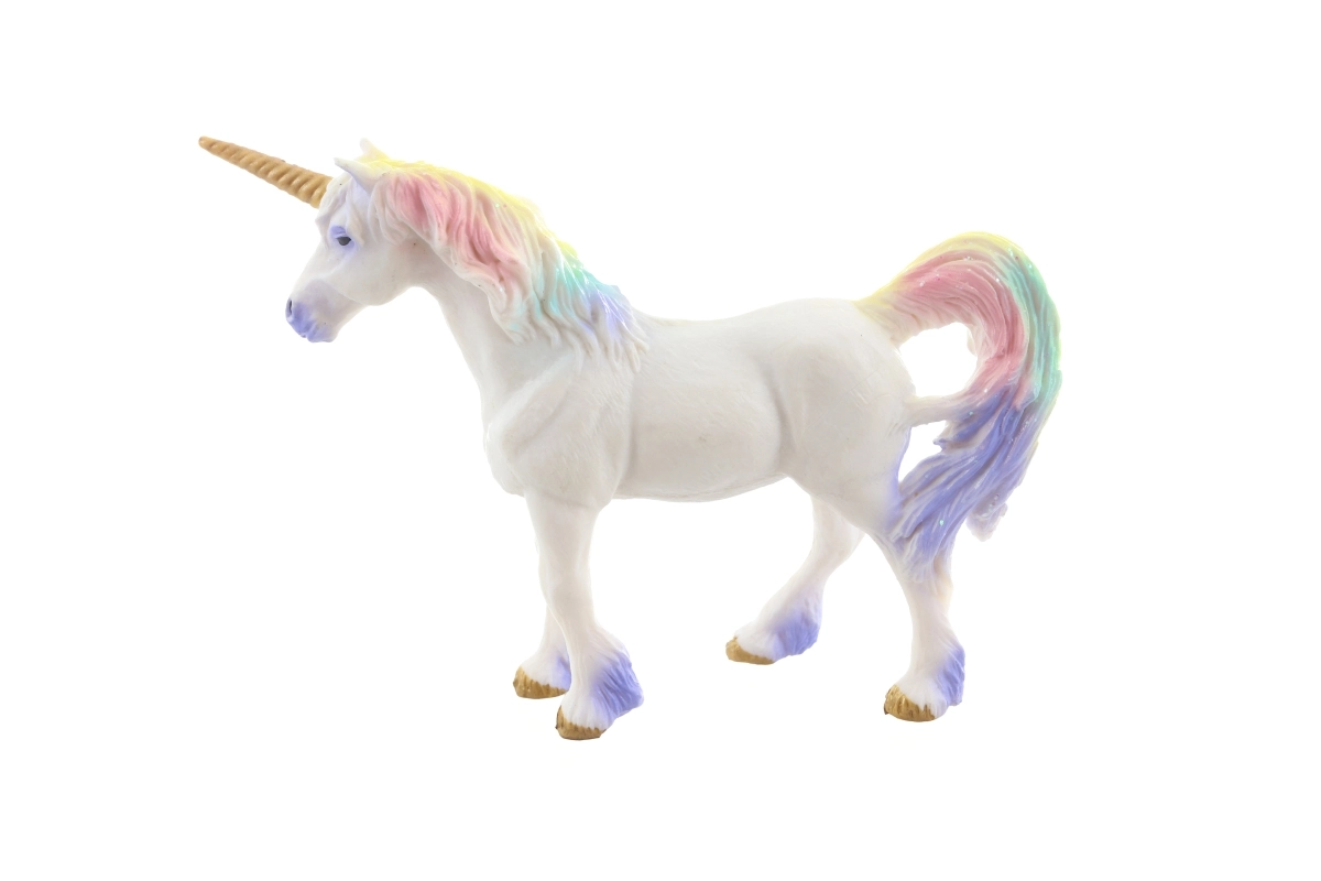 Schattig plastic eenhoornfiguur met een regenboogmanen en gouden hoorn dat zowel kleine als grote liefhebbers van de magische wereld zal bekoren. Ideaal voor creatief spel, kamerdecoratie of als lief cadeau. Compact formaat van ca. 15 × 11 × 4 cm en hoogwaardige afwerking met gedetailleerde vormgeving zorgen voor langdurig speelplezier. Geschikt voor kinderen vanaf 3 jaar.