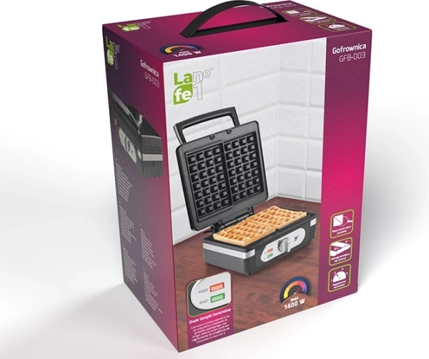 Ontdek het plezier van huisgemaakte wafels met het Lafe wafelijzer. Het krachtige verwarmingselement van 1400 W zorgt voor gelijkmatige garing en de perfecte structuur. De koelblijvende handgreep verhoogt de veiligheid tijdens het gebruik, terwijl de Power/Ready-indicatoren de bediening vereenvoudigen – je weet precies wanneer je het beslag moet gieten.