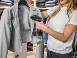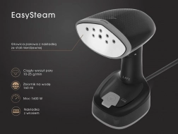 De verticale stoomfunctie maakt het mogelijk om een colbert, jurk of gordijnen direct op de hanger bij te werken. De inklapbare handgreep en compacte afmetingen maken de EasySteam tot een geweldige reisgenoot, terwijl het waterreservoir van 160 ml voldoende is voor snelle opfrisbeurten van meerdere kledingstukken.