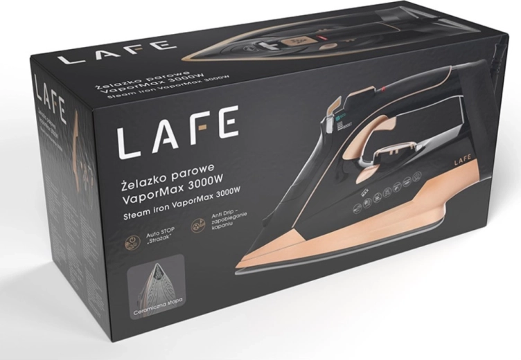 Ontdek snel en comfortabel strijken met het LAFE VaporMax strijkijzer. Dankzij het uitzonderlijke vermogen van 3000 W is het in een oogwenk klaar voor gebruik en strijkt u zelfs dikke stoffen moeiteloos glad. De keramische zoolplaat zorgt voor een soepele glide en een gelijkmatige warmteverdeling voor geweldige resultaten op zowel delicate als stevige materialen.