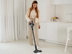 De krachtige 2200 mAh accu levert tot 35 minuten schoonmaken, het 0,5 l reservoir is snel te legen en twee vermogensniveaus passen zich aan verschillende vervuilingsgraden aan. De 22 kPa zuigkracht pakt stof, haren en kruimels aan, en dat bij een prettig laag geluidsniveau van 75 dB(A).