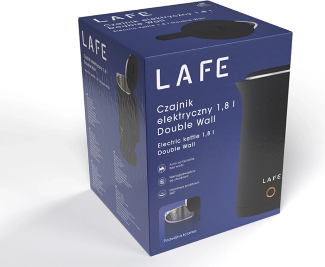 De stijlvolle LAFE-waterkoker met Double Wall-technologie biedt veilig en snel water koken. Dankzij de niet-opwarmende behuizing “Cool Touch” blijft het oppervlak koel, terwijl krachtige 1800 W het water razendsnel aan de kook brengt. Voorzien van een geur-/kalkfilter, automatische uitschakeling bij geen water, oververhittingsbeveiliging en een verborgen plaatverwarming voor eenvoudig schoonmaken.