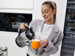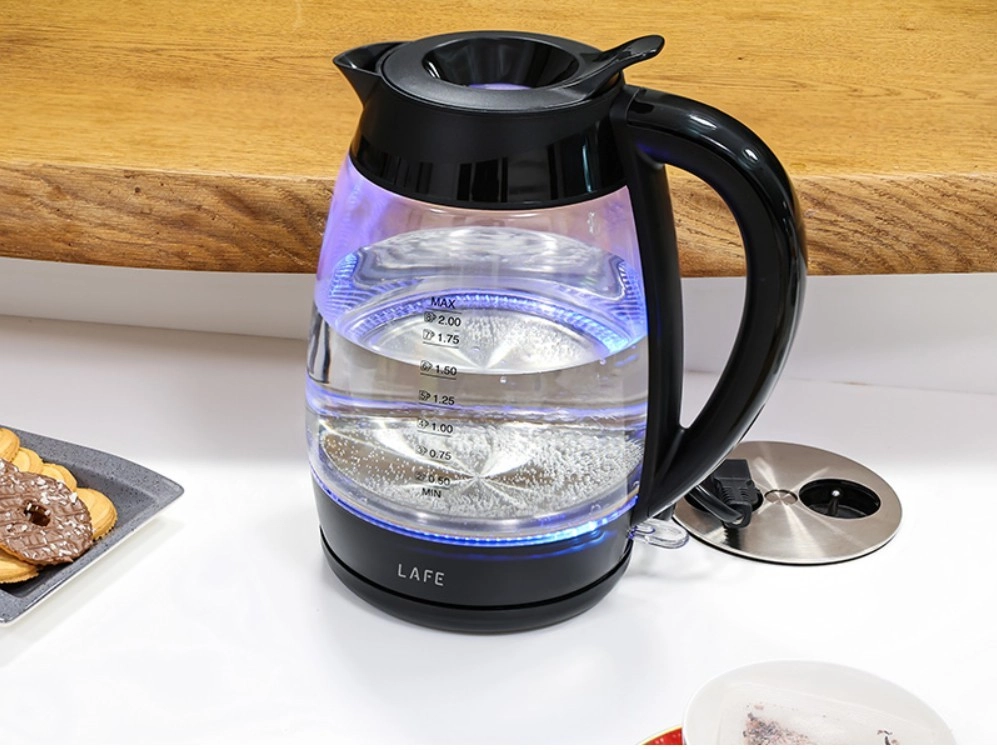 Het duurzame glas maakt het eenvoudig om het waterniveau te controleren, terwijl het blauwe LED-licht het verwarmen elegant aangeeft en je keuken een moderne uitstraling geeft.