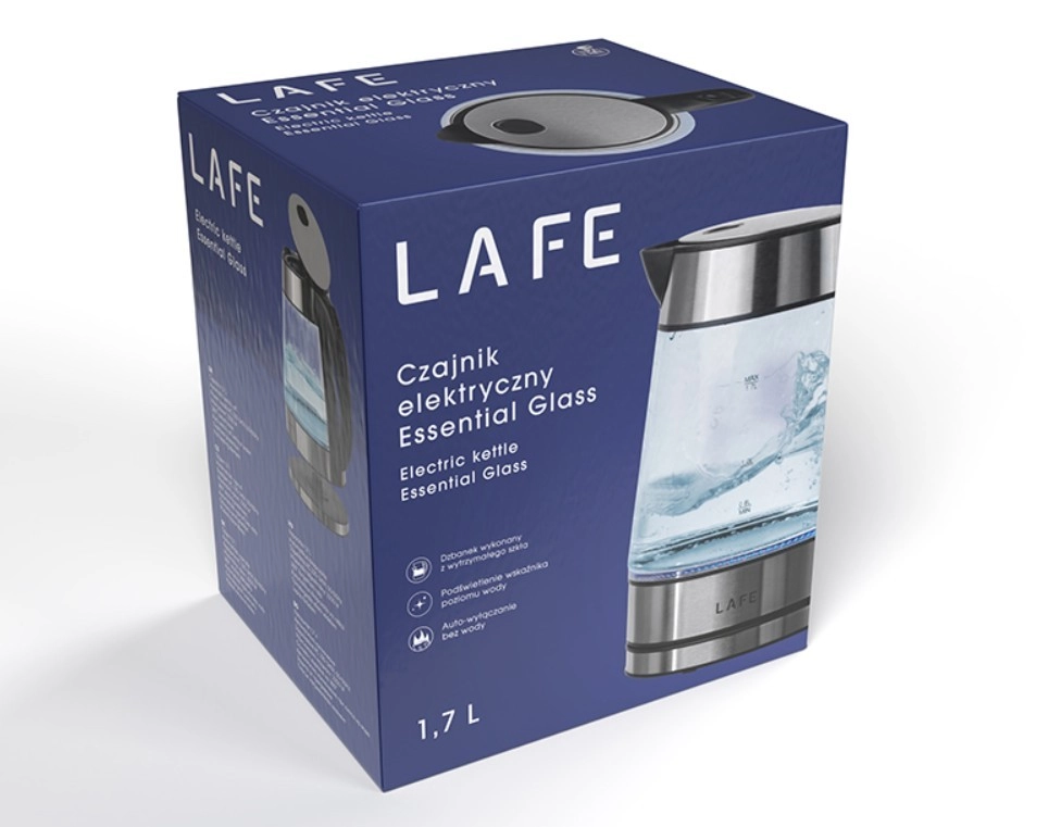 De elegante glazen waterkoker van Lafe combineert modern design met praktisch gemak. De transparante kan met maatverdeling geeft perfect zicht op de hoeveelheid water, terwijl de blauwe LED-verlichting de werking aangeeft. Dankzij de krachtige verwarming zet je thee, koffie en andere warme dranken in een mum van tijd.
