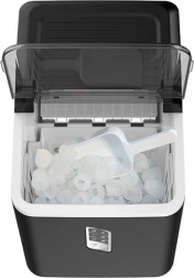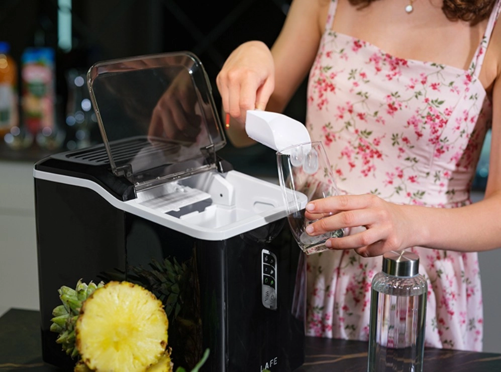 Met een reservoircapaciteit van 1,5 l en een output tot 12 kg/24 u dekt hij de behoeften van familiefeesten én dagelijks gebruik. De zelfreinigende modus houdt het apparaat moeiteloos hygiënisch schoon en de elektronische bediening met indicatoren zorgt voor intuïtieve bediening. Bovendien is er een instelbare blokjesgrootte voor cocktails, limonades en longdrinks.