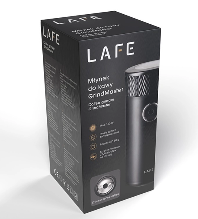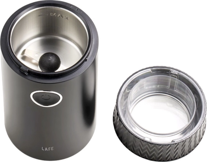Geniet elke dag van de geur en smaak van versgemalen koffie. De elektrische koffiemolen LAFE GrindMaster biedt eenvoudige bediening met één knop, roestvrijstalen messen en kamer voor een lange levensduur en een deksel-veiligheidsvergrendeling. Dankzij de capaciteit van ca. 50 g maak je eenvoudig meerdere kopjes aromatische koffie klaar.