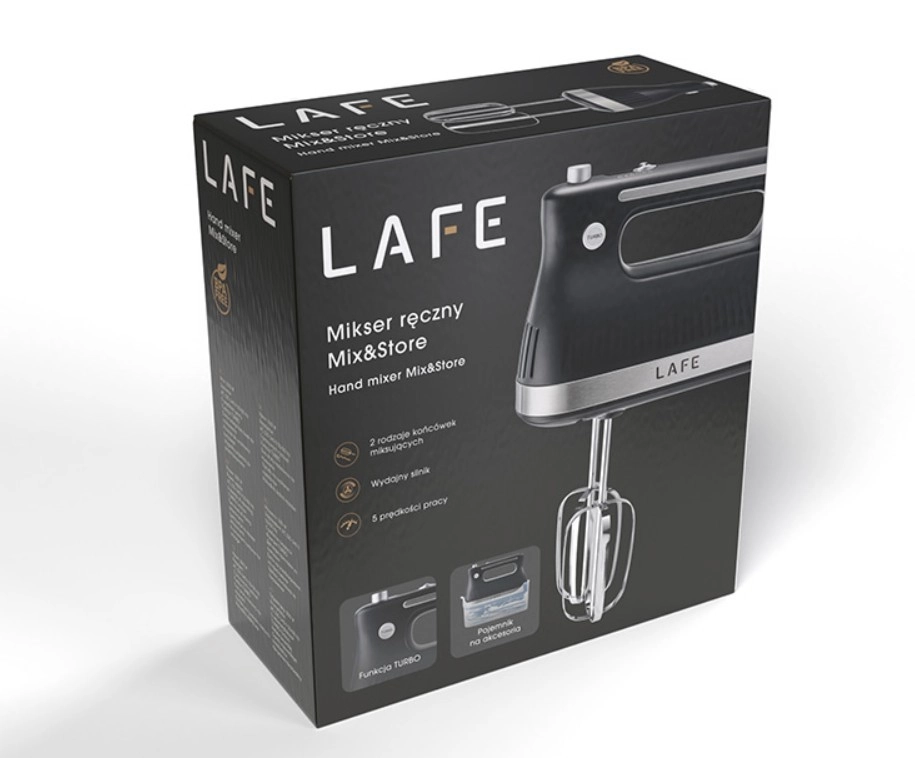 Ontdek veelzijdigheid en comfort met de LAFE Mix&Store handmixer. Dankzij de krachtige motor en vijf traploos te kiezen snelheden klop je gemakkelijk slagroom, maak je crèmes, deeg en luchtige mousses. De Turbomodus levert direct extra vermogen voor steviger mengwerk.