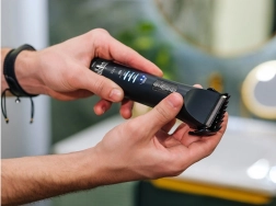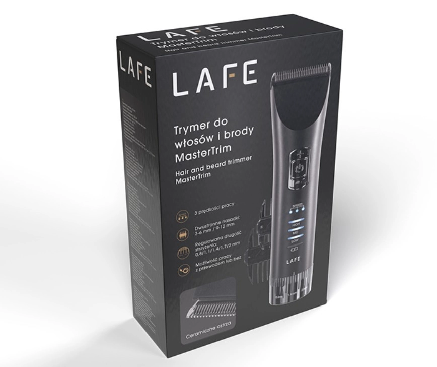 Zoek je een betrouwbare trimmer voor een precieze verzorging van haar en baard? MasterTrim biedt scherpe keramische messen van 45 mm voor een soepele snit, drie prestatieniveaus voor verschillende haartypes en baarden, en een nauwkeurige lengte-instelling van 0,8 / 1,1 / 1,4 / 1,7 / 2,0 mm. Dankzij de ergonomische vorm en draadloze werking heb je volledige controle over je styling.