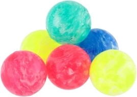Een stuiterbal is een balletje dat mooi van de grond terugkaatst. Deze set van 6 kleurrijke, gemarmerde ballen is bijzonder. Probeer alle zes stuiterballen tegelijk te laten vallen! Of deel ze met je vrienden!