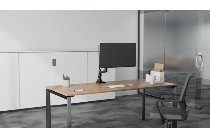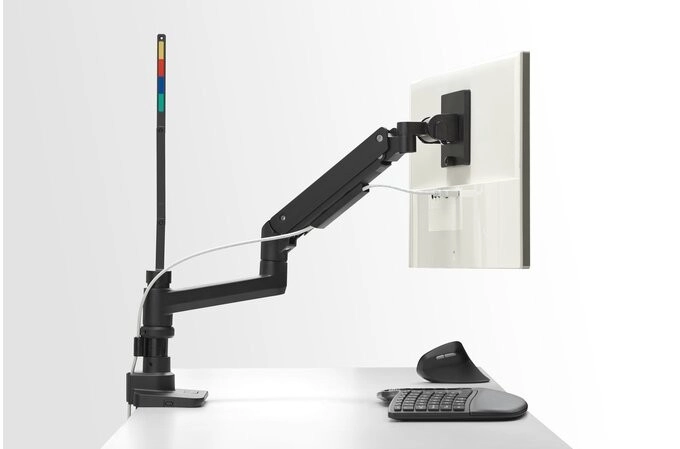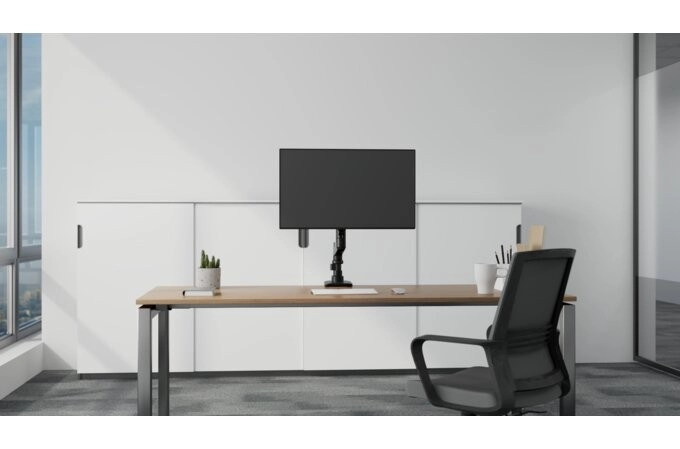 De arm is ontworpen voor grote en zware displays – ondersteunt één monitor tot 49" en 20 kg met VESA-bevestiging 75/100/200/300. De voorgeïnstalleerde C-klem versnelt de montage en snelkoppelende VESA-plaatjes maken het plaatsen of verwijderen van de monitor eenvoudig. Het geïntegreerde kabelkanaal houdt het werkoppervlak schoon en overzichtelijk.