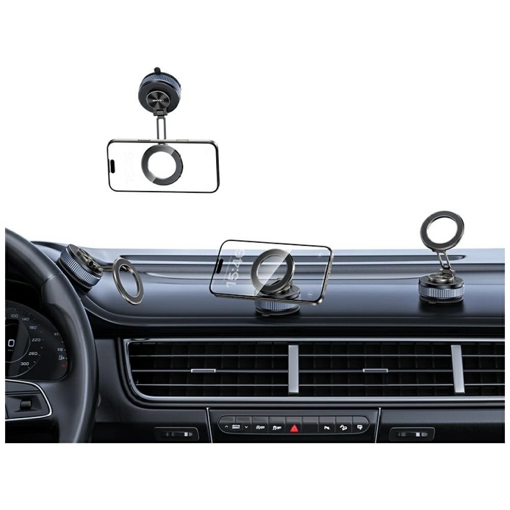 De houder USAMS ZJ084 valt op door het minimalistische metalen design in een donkere titaniumtint die past bij elk auto-interieur. Dankzij krachtige neodymiummagneten houdt hij je telefoon stevig vast, zelfs bij hard remmen of rijden over kasseien. Op- en afnemen met één hand bespaart tijd en houdt je aandacht op de weg.