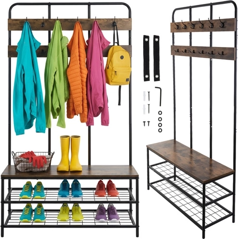 De praktische oplossing bespaart ruimte en houdt alles binnen handbereik – van jassen en tassen tot schoenen. Antislip doppen aan de poten beschermen de vloer tegen krassen en garanderen stabiliteit, ook bij hogere belasting.