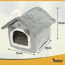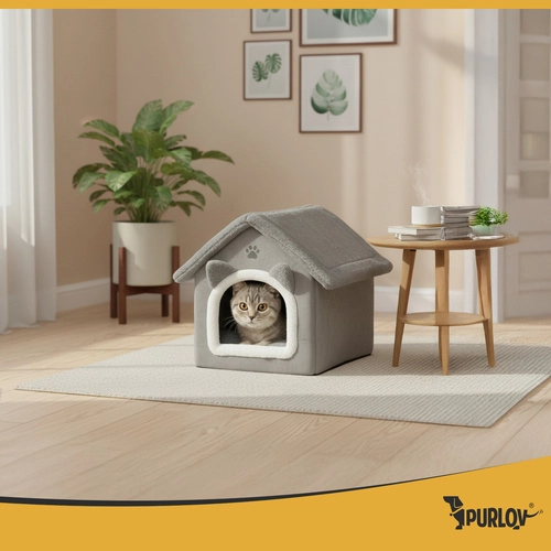Het Purlov huisje is een ideale schuilplek en een comfortabele plaats om te luieren. De kat kan binnenin wegkruipen voor een rustige slaap of bovenop gaan liggen. Het pluche materiaal biedt het hele jaar door warmte en comfort, terwijl de lichte constructie zorgt voor aangename ventilatie in warmere maanden.