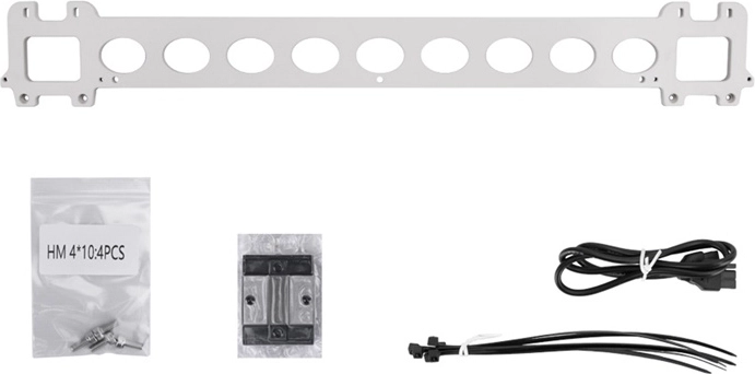 Inhoud van de verpakking: montageplaat, HM-schroeven 4×10 (4 stuks), montageblok, kabel, kabelbinders.