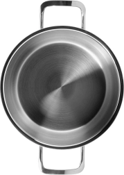 Praktische roestvrijstalen pan met deksel met een inhoud van 3,5 l en een diameter van 18 cm, ideaal voor dagelijks koken en stoven. Dankzij de meerlaagse acute-thermische bodem wordt de warmte gelijkmatig verdeeld en energie bespaard. Geschikt voor alle soorten kookplaten, inclusief inductie, met stevige handgrepen en eenvoudig onderhoud in de vaatwasser.