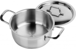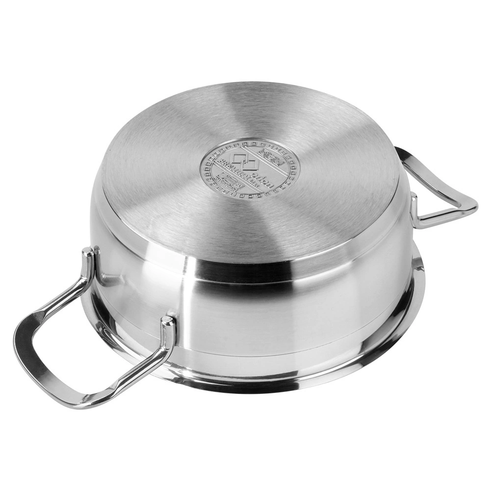 Ontdek de duurzame Anett-pan van hoogwaardig roestvrij staal 18/10 met matte afwerking en een elegante glanzende band. De meerlaagse akuthermische bodem accumuleert snel en verspreidt warmte gelijkmatig, waardoor de bereidingstijd korter wordt en energie wordt bespaard. Ideaal voor het koken van soepen, sauzen en het stoven van groenten of vlees.