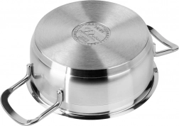 De pan is compatibel met alle soorten kookplaten, inclusief inductie. Comfortabele grepen en een precies passend deksel met stoomopeningen zorgen voor veilige hantering en controle over het kookproces. Dankzij de doordachte vorm is de pan gemakkelijk te reinigen en geschikt voor de vaatwasser.