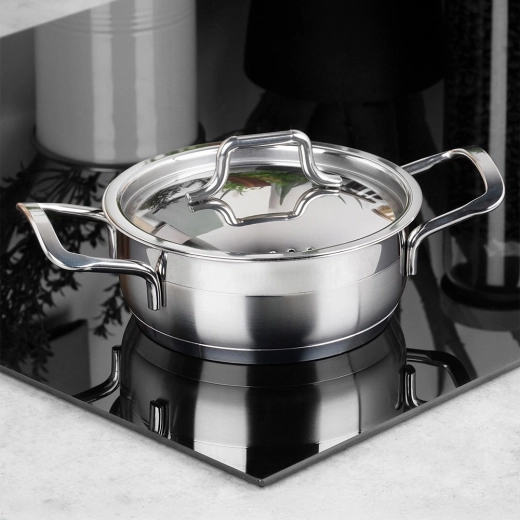 Dankzij de meerlaagse bodem warmt hij snel en gelijkmatig op, kookt hij energiezuinig en maakt hij bereiding met een minimum aan vet mogelijk, zonder onnodig verlies van vitamines en mineralen. Perfect voor soepen, sauzen, opwarmen en kleine porties bijgerechten.