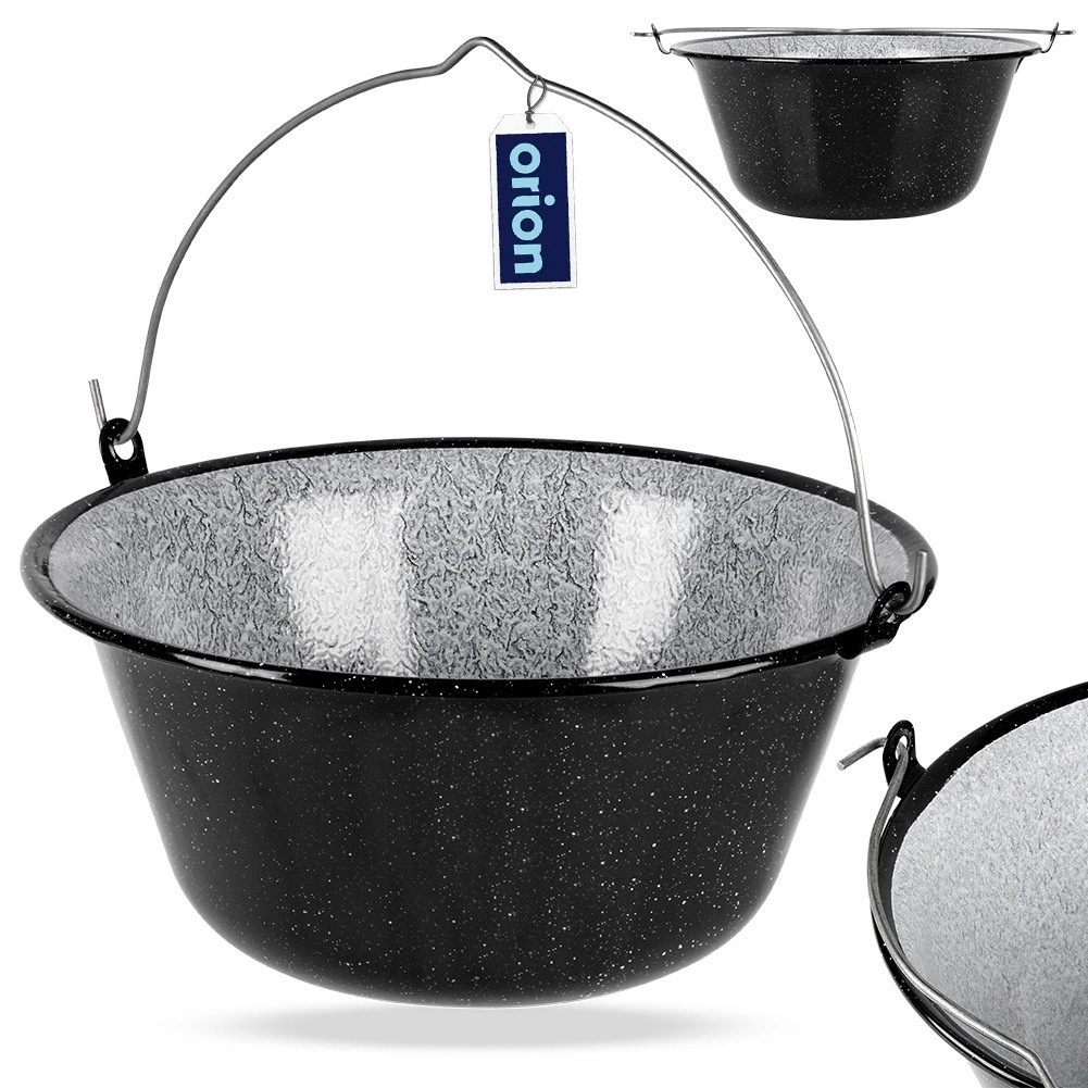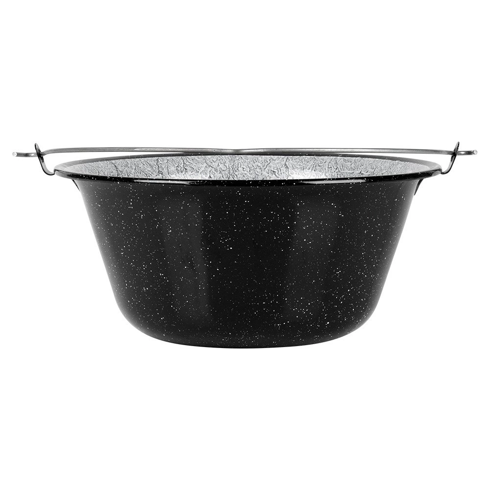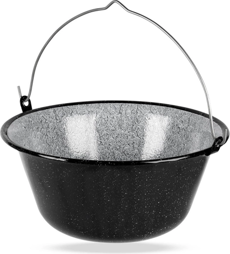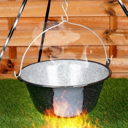 Deze hangende, met emaille beklede ketel is een perfecte keuze voor buiten koken. Duurzaam geëmailleerd staal, zwart aan de buitenkant en licht van binnen, zorgt voor een lange levensduur, gemakkelijk reinigen en is gezondheidsveilig, ook geschikt voor mensen met allergieën. Dankzij de inhoud van 13 liter kunt u comfortabel het hele gezin en vrienden bedienen.